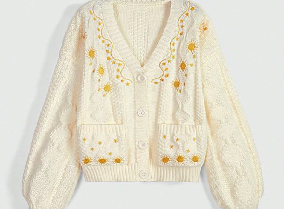 Cách phối áo cardigan len nữ đính hoa