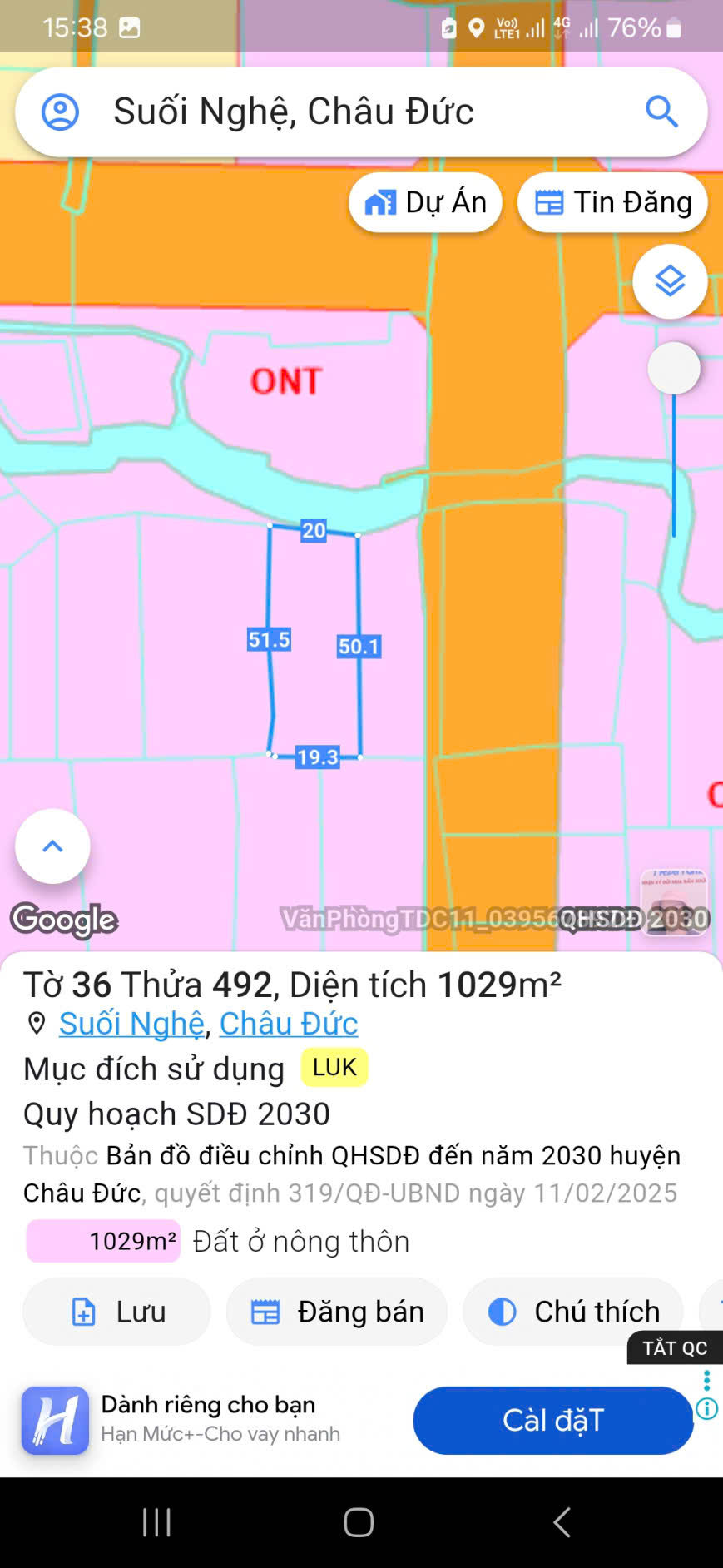 Chủ bán 55m mặt tiền 56b suói nghệ 34326727 | Rongbay.com