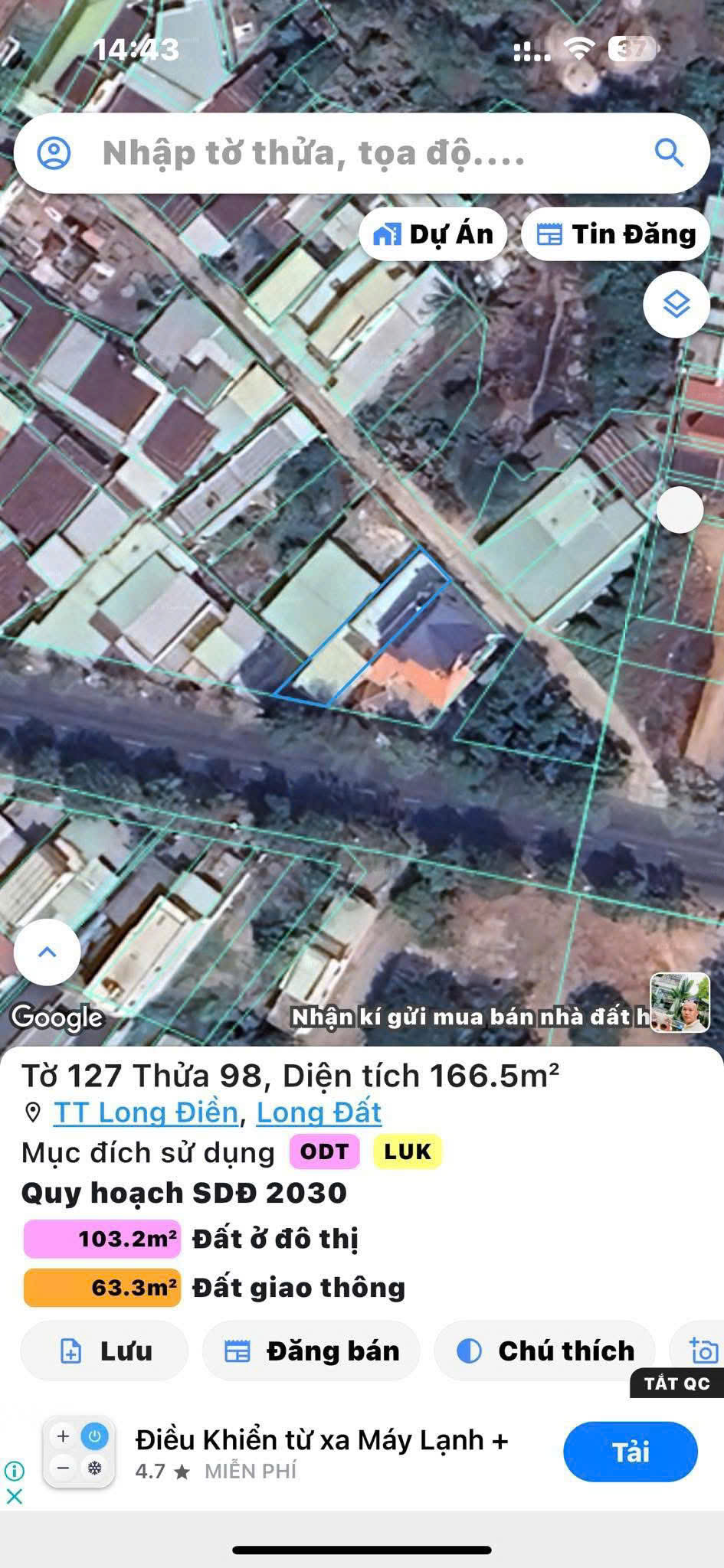 - Diện tích: 166m² (103m² thổ cư)