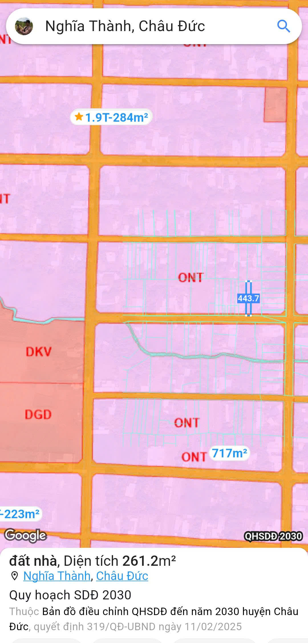 - ĐẤT có quy hoạch đất ở nông thôn, dân cư đông. Khu  dân cư bàn cờ Suối Nghệ - Nghĩa Thành kế bên  KCN Châu Đức SONADEZI là chủ đầu tư.