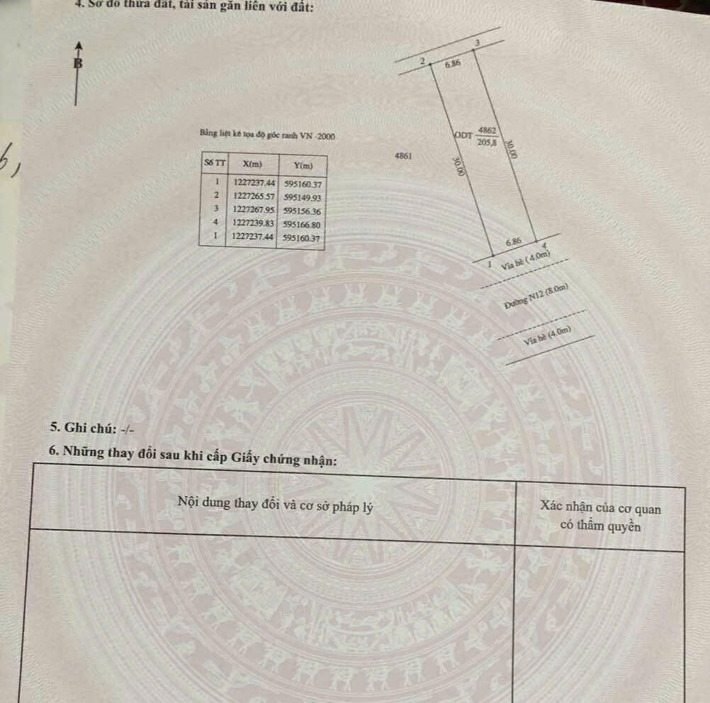 Diện tích: 205,8 m² (ngang 6,86m x dài 30m)