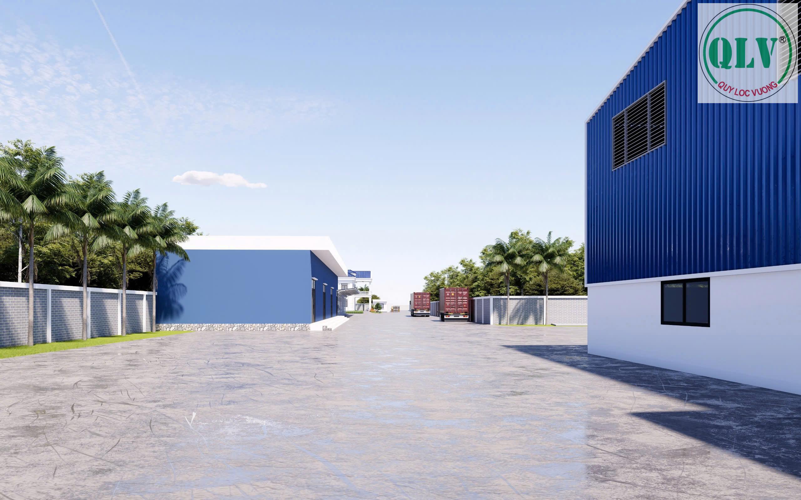 Đường nội bộ xe container ra vào thuận tiện, mặt bằng sạch đẹp