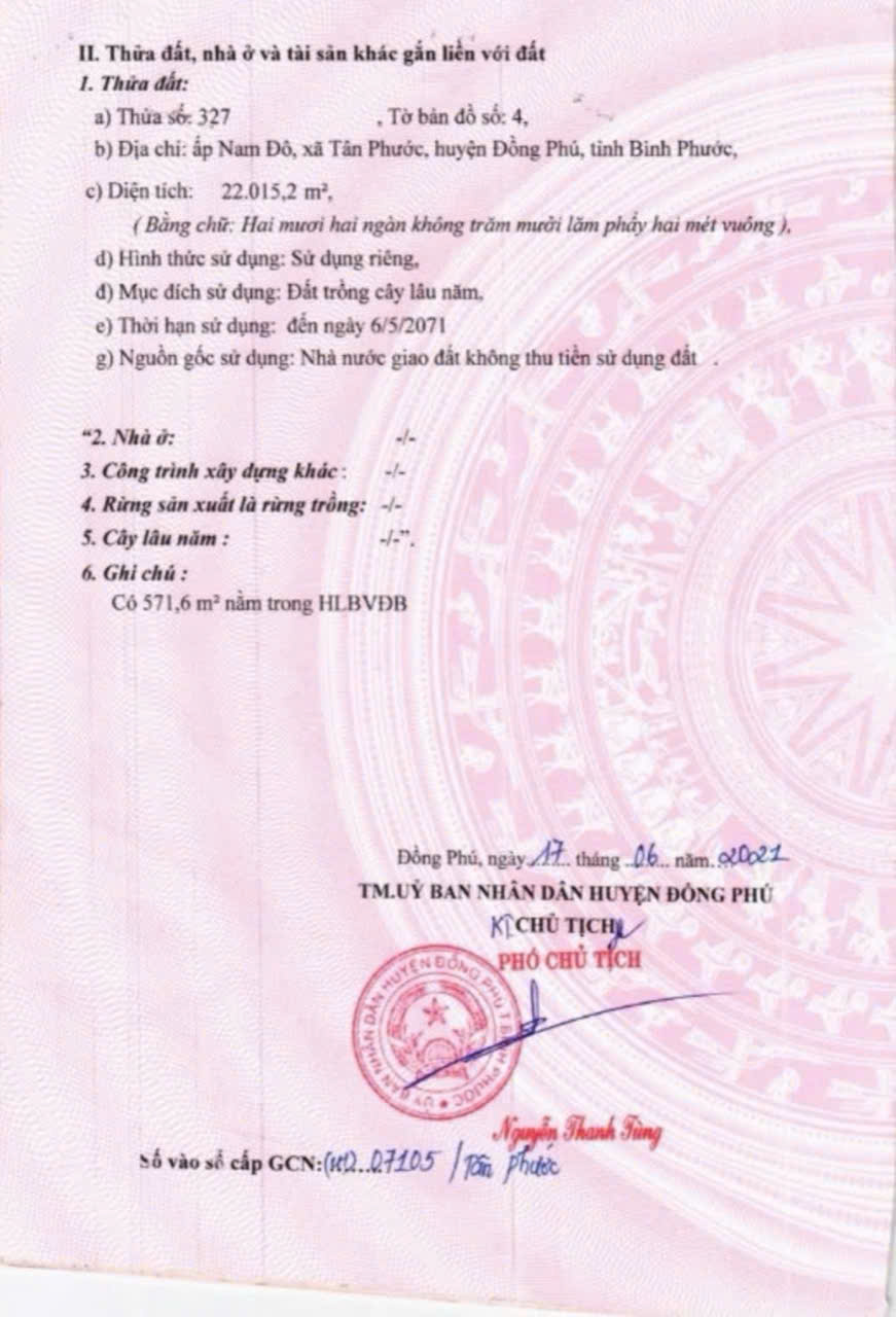 Nhanh tay sở hữu lô đất đẹp tại xã Tân Phước, Đồng Phú, Bình Phước với diện tích rộng lớn 22015 m².