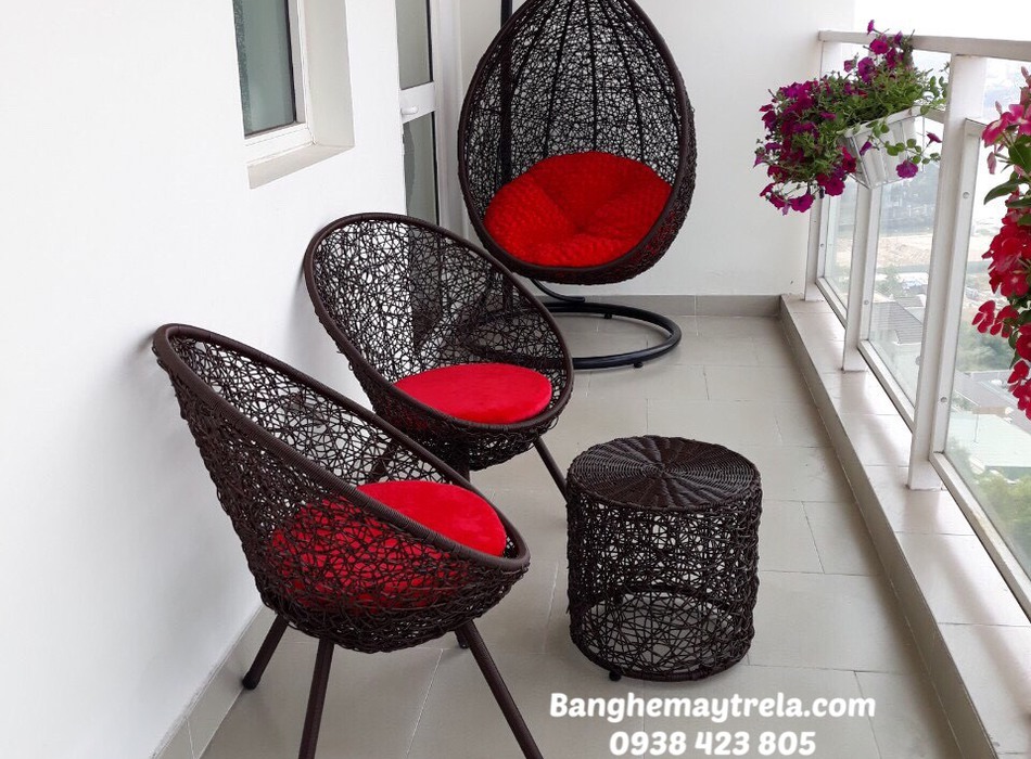 Xích đu kèm bàn ghế ban công giả mây