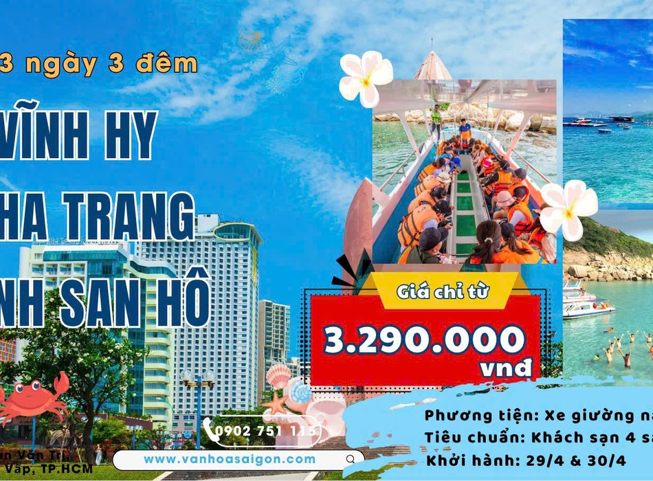 TP. HCM - Vĩnh Hy - Nha Trang - Vịnh San Hô 3N3D LỄ 30.4