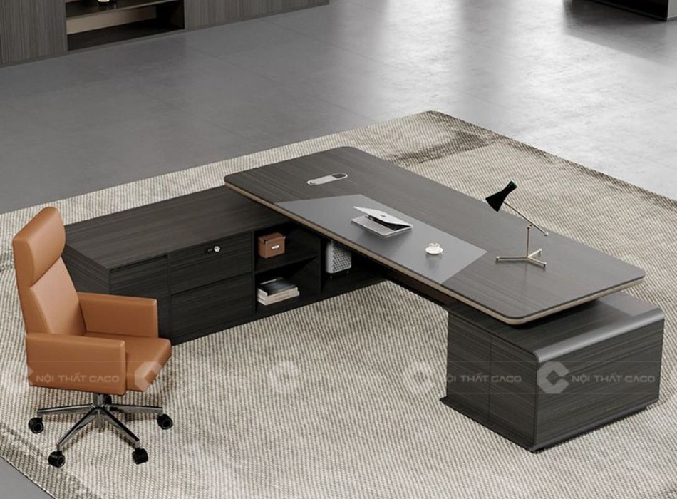 Mẫu Bàn Giám Đốc Gỗ Công Nghiệp Chữ L Màu Xám Quyền Lực