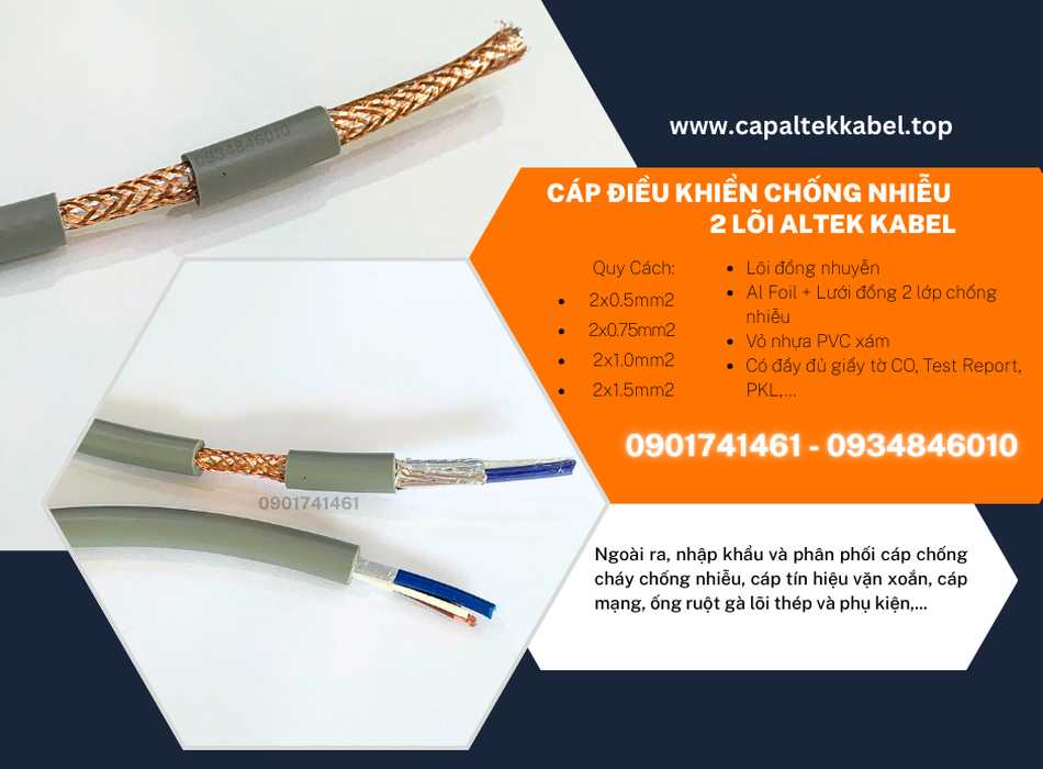 Cáp chống cháy chống nhiễu 2x1.5 Altek Kabel phân phối Đà Nẵng, Hà Nội, Hồ Chí Minh