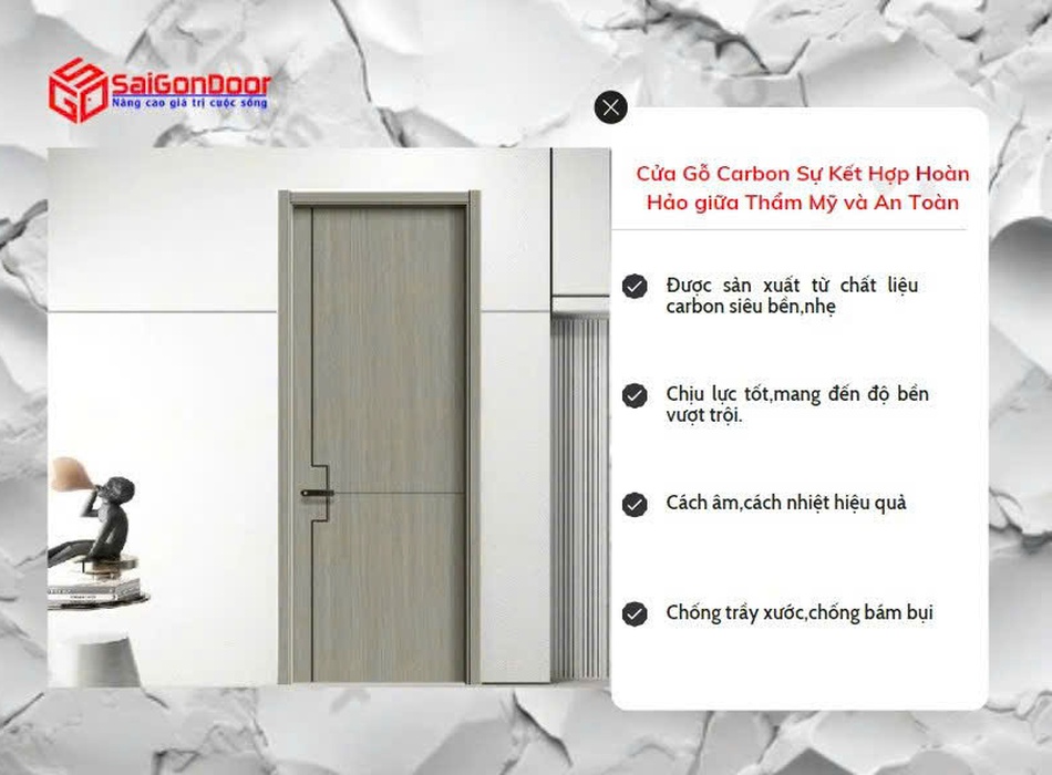 Cửa Gỗ Carbon   Siêu Nhẹ, Siêu Bền Gỗ Carbon – Cửa nhẹ mà chất, bền đẹp theo năm tháng!