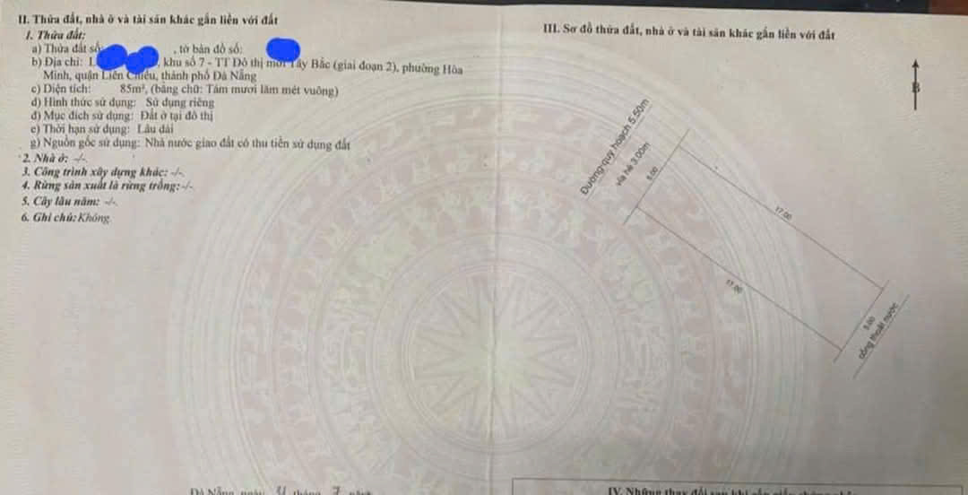 -Đường 5m5, vỉa hè 3m.