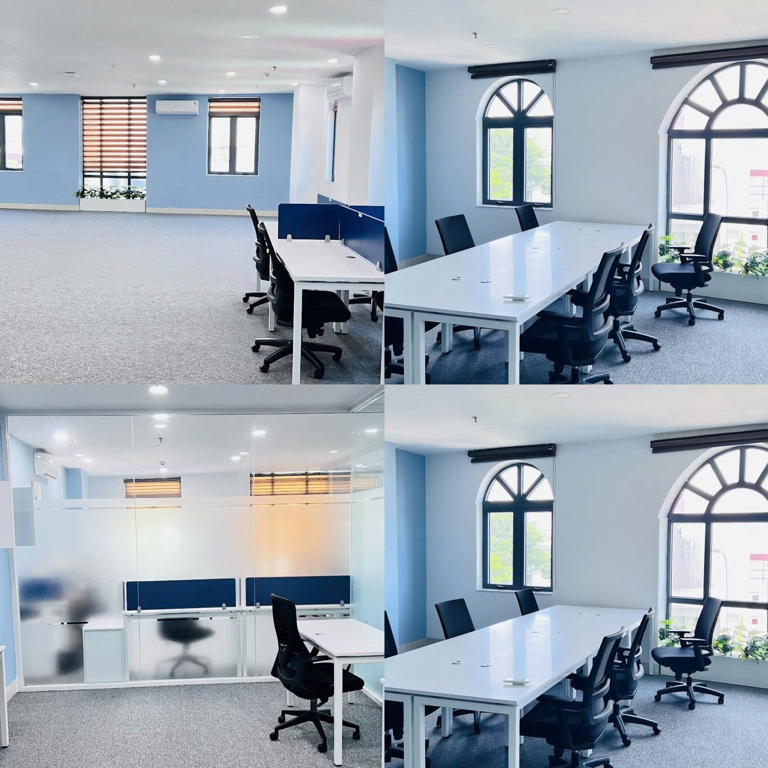 - Trang bị đầy đủ nội thất cao cấp: bàn ghế làm việc, tủ hồ sơ, điều hòa, vách ngăn kính