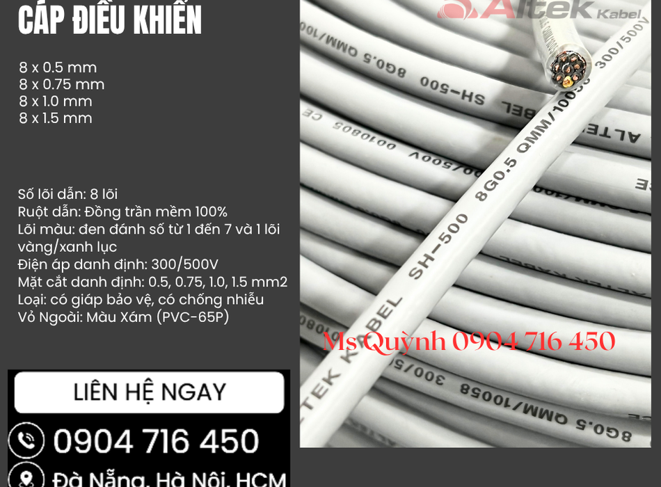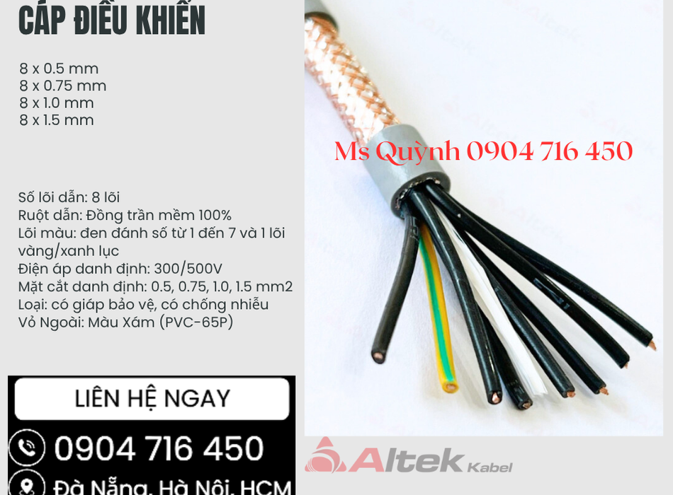 Cáp điều khiển 8x0.5, 8x0.75, 8x1.0, 8x1.5 Altek Kabel