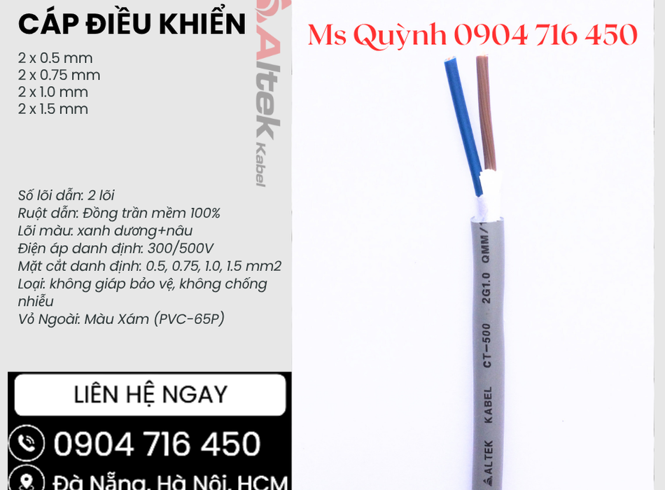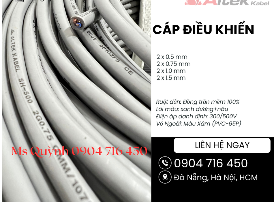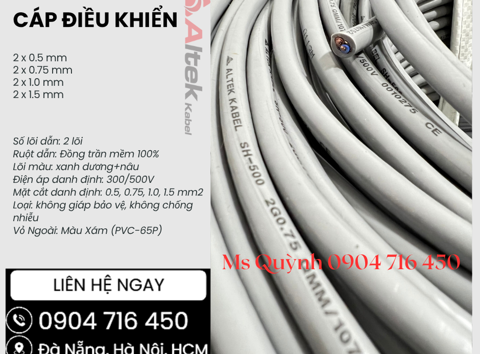 Cáp tín hiệu điều khiển 2x0.5, 2x0.75, 2x1.0, 2x1.5 Altek Kabel Đà Nẵng, Hà Nội 34362992 | Rongbay.com