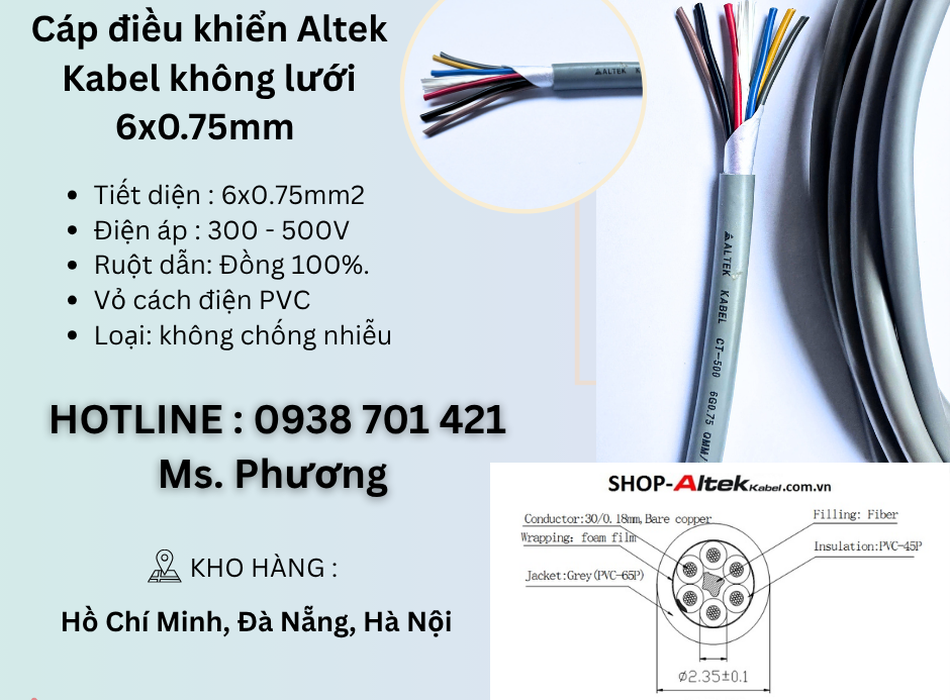 31/10/25 Cáp điều khiển Altek Kabel không lưới 6x0.75mm Đà Nẵng, Hà Nội, Hồ Chí Minh