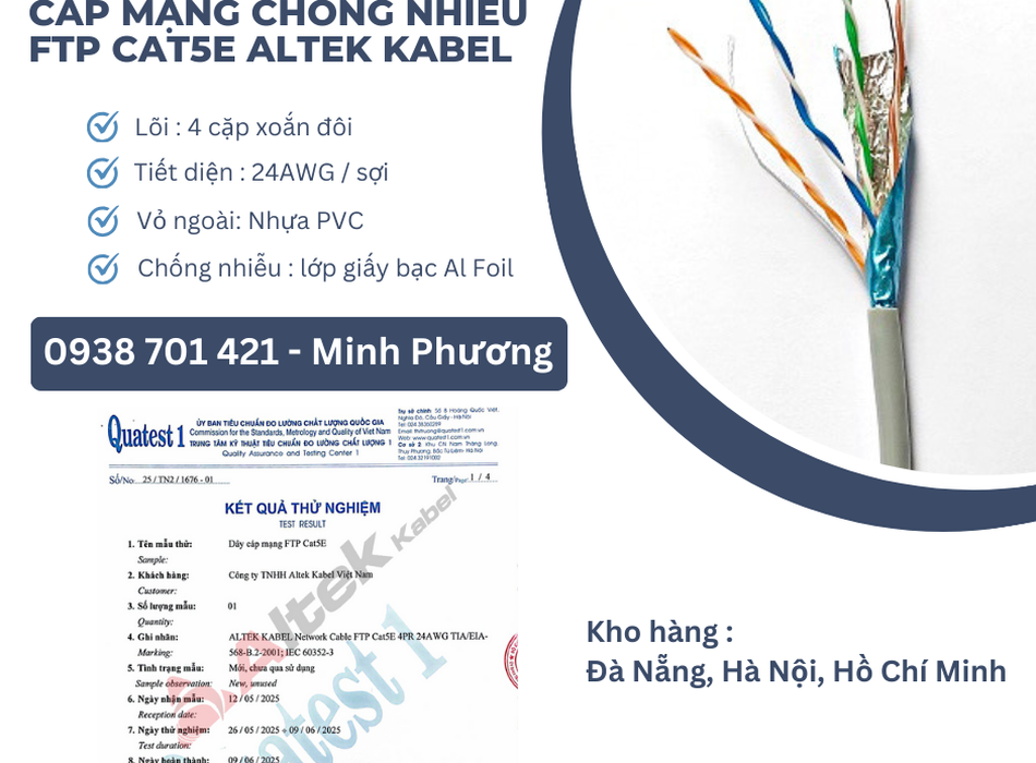 Cáp mạng chống nhiễu FTP cat5e chính hãng Đà Nẵng, Ninh Thuận, Đắk Lắk