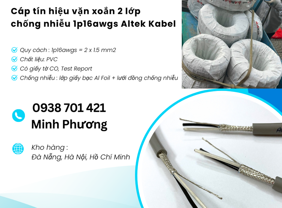 Cáp tín hiệu vặn xoắn 2 lớp chống nhiễu 1p16awgs Altek Kabel Đà Nẵng, Bình Định, Phú Yên
