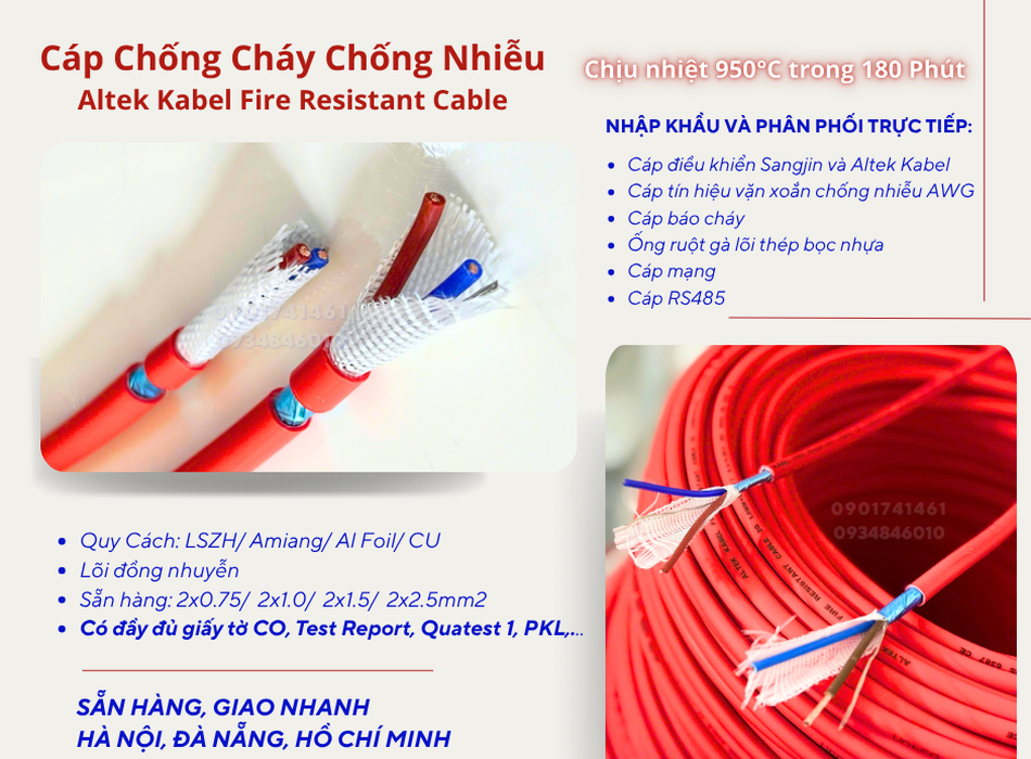 Cáp chống cháy chống nhiễu 2x1.5mm2 Altek Kabel phân phối Đà Nẵng, Quảng Ngãi