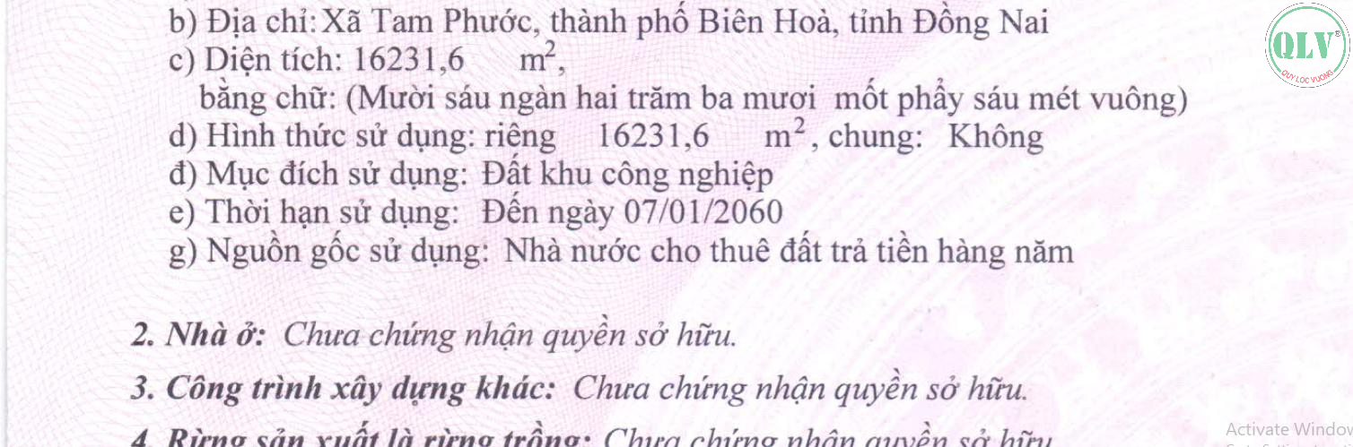 Loại đất: Đất cụm công nghiệp, đã trả tiền sử dụng đất một lần, thời hạn đến năm 2060