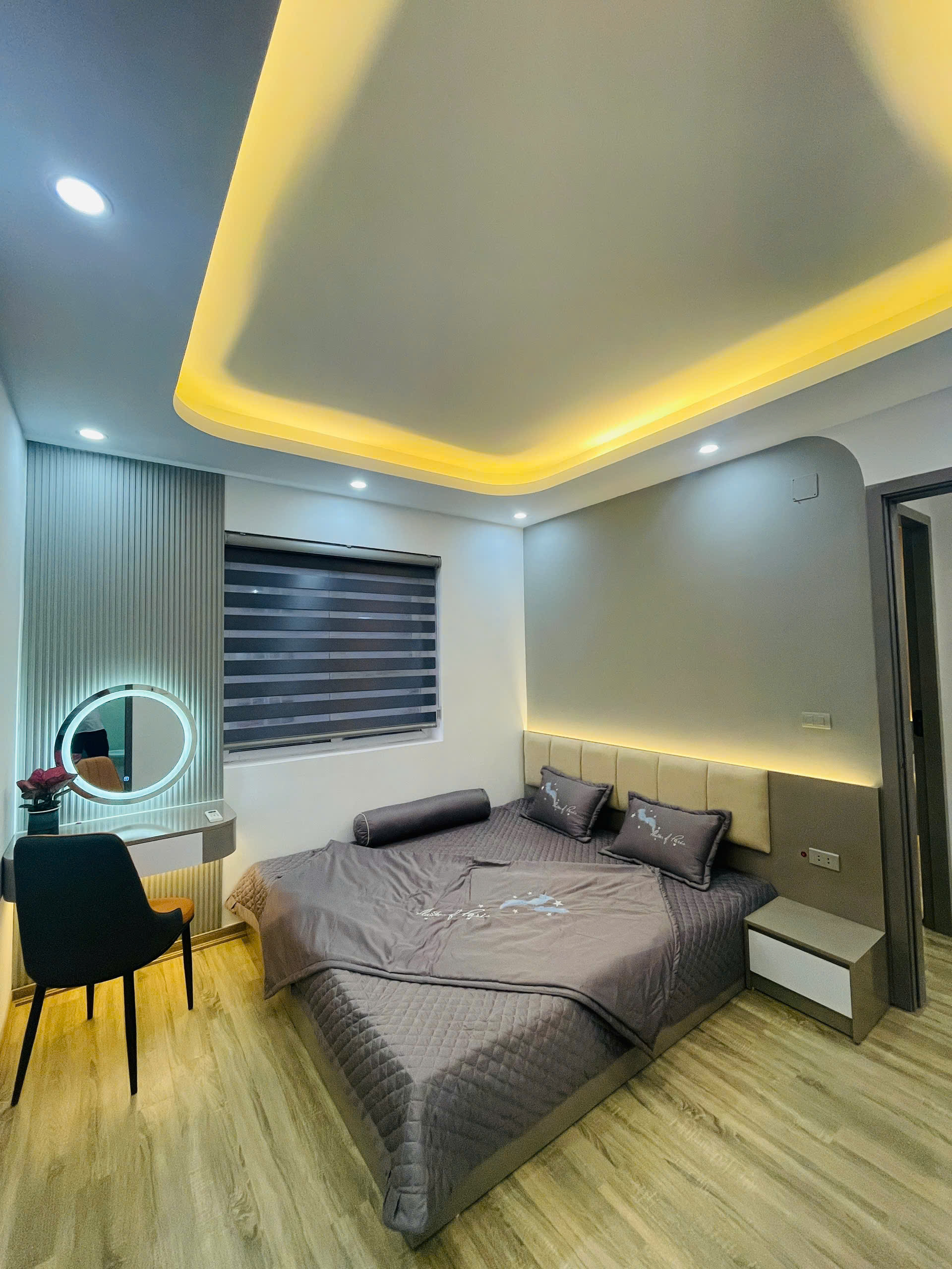 -         Nội thất được trang bị thiết kế tỉ mỉ, đồng bộ mới như hệ thống tủ bếp, sàn gỗ, trần thạch cao, giường tủ, nóng lạnh, điều hoà, bàn ghế, quạt, đồ deco, sopha….