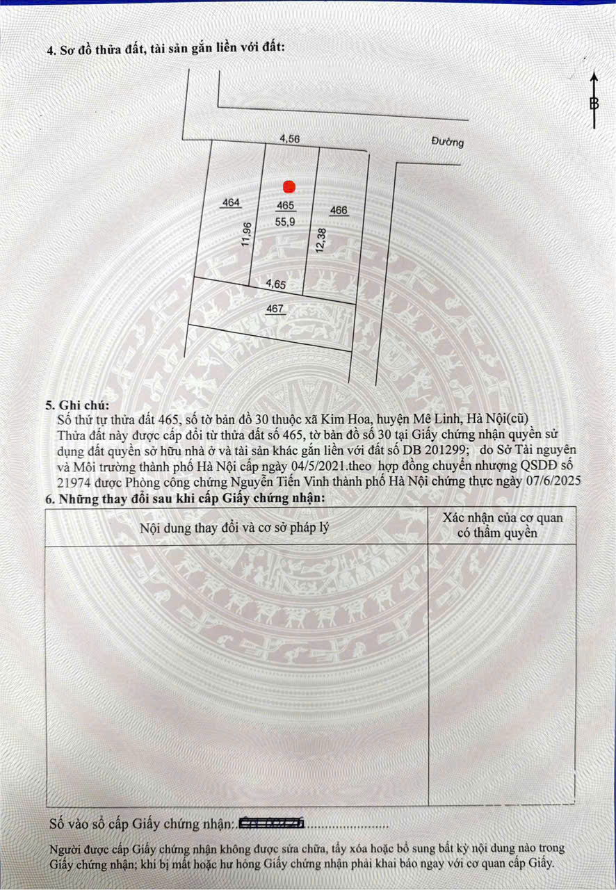 + Diện tích: 56m, mặt tiền 4,5m, hướng bắc, đất full thổ cư.