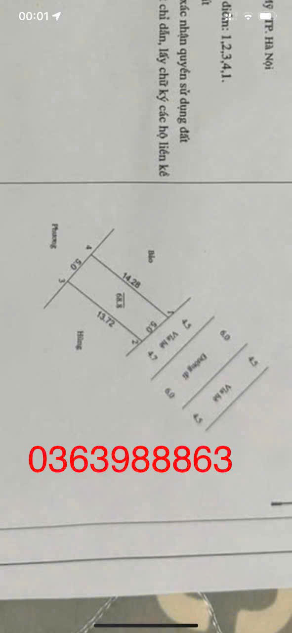 Diện tích: 68,8 full thổ cư:mặt tiền 5m.
