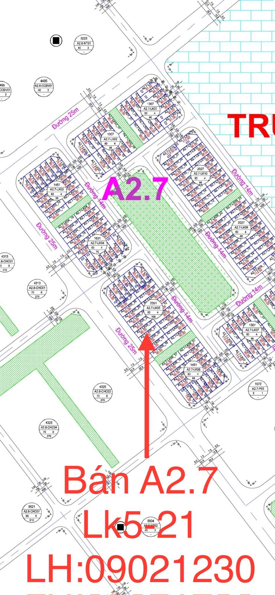 Bán liền kề khu đô thị thanh hà a2.7 lk05-21 nhìn khu chung cư, dt 90m, đường 25 m, hướng tây nam, 34317726 | Rongbay.com