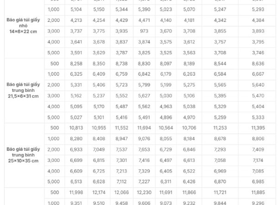 Bạn có thể tham khảo bảng báo giá in túi giấy bên dưới của In Hoa Long: