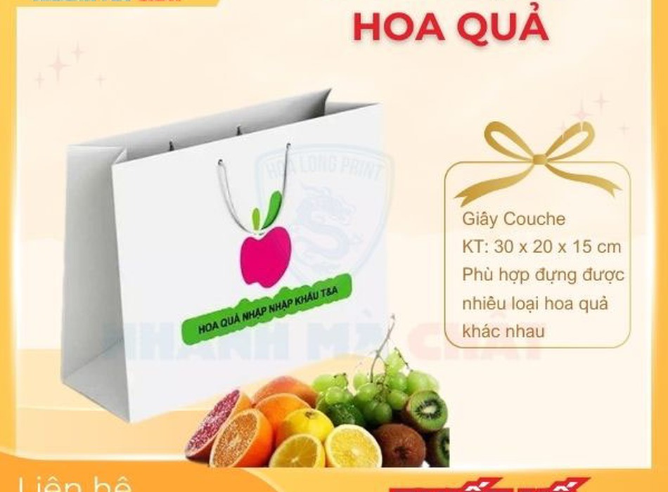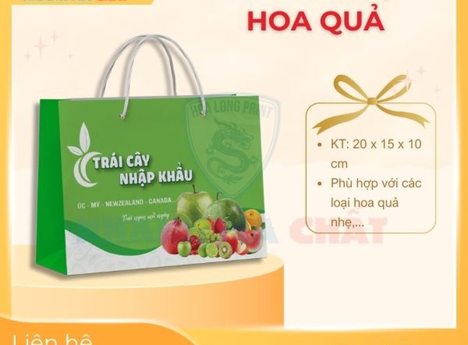 Với những ưu điểm như vậy, In Hoa Long luôn là địa điểm nhận được nhiều đơn hàng in túi giấy đựng hoa quả và nhận được những phản hồi tích cực. Nếu bạn có nhu cầu đặt in, vui lòng liên hệ hotline 0903.400.469.