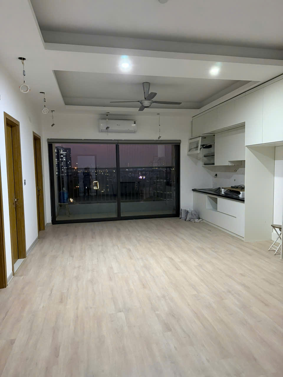 Nội thất được trang bị: Sàn gỗ, trần thạch cao, nóng lạnh, 3 điều hòa, quạt trần, tủ bếp trên dưới, bếp từ hút mùi, quạt trần, sàn gỗ 12ly, cửa thay toàn bỗ chống cháy chống nước