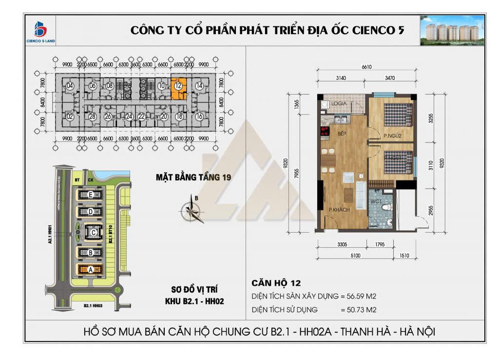Diện tích: 57m² – 2 phòng ngủ, 1vs thiết kế vuông vắn, tối ưu công năng sử dụng cho cả gia đình, ban công hướng Bắc thoáng mát