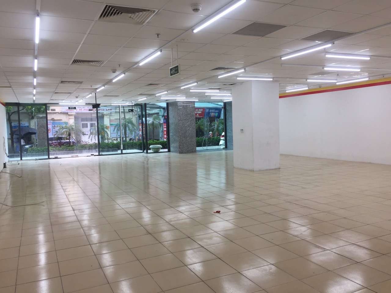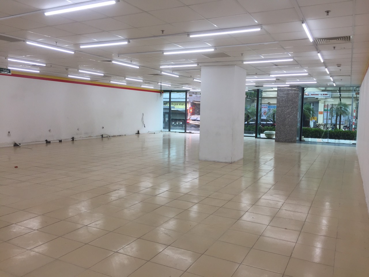 Mặt bằng đã trang bị sẵn hệ thống chiếu sáng, điều hòa âm trần, hệ thống nước nóng, chỗ để xe rộng rãi