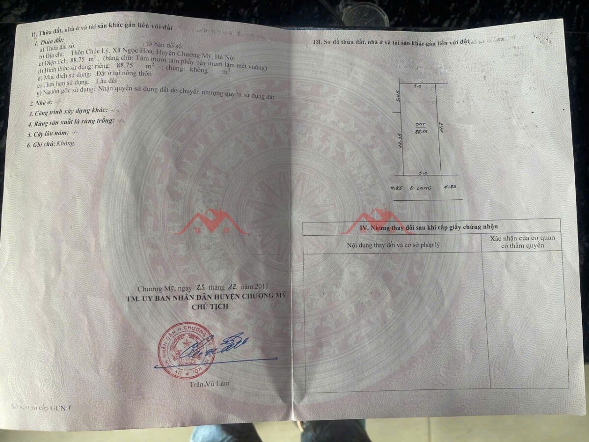 Diện tích: 88,75m², mặt tiền – hậu 5m, đất vuông vắn đẹp