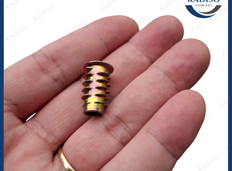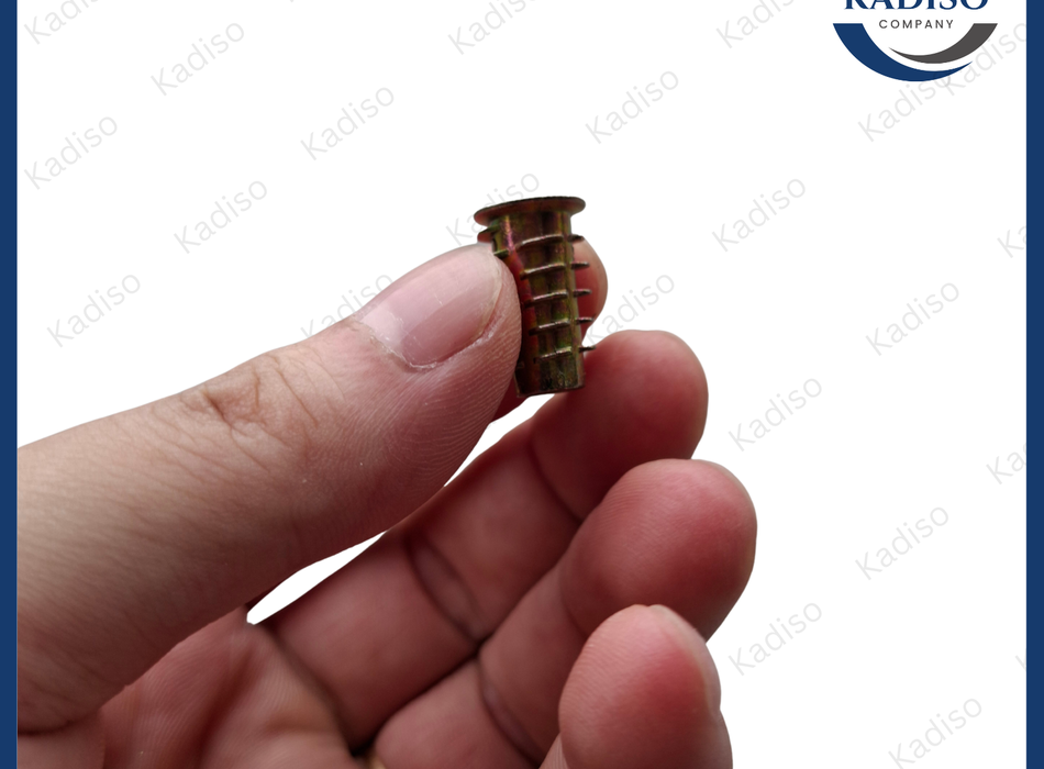 Một đầu có vành (flange) — là phần miệng loe ra giống "cổ áo", giúp giữ cố định vị trí ốc khi lắp vào gỗ.