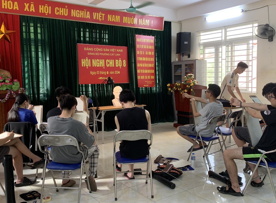 Lớp học vẽ ở Đào xuyên Bát tràng của trung tâm dạy vẽ ARC Hà Nội.