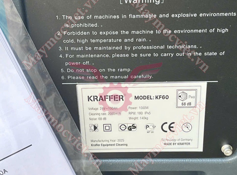 Thông số kỹ thuật Máy chà sàn công nghiệp Kraffer KF60