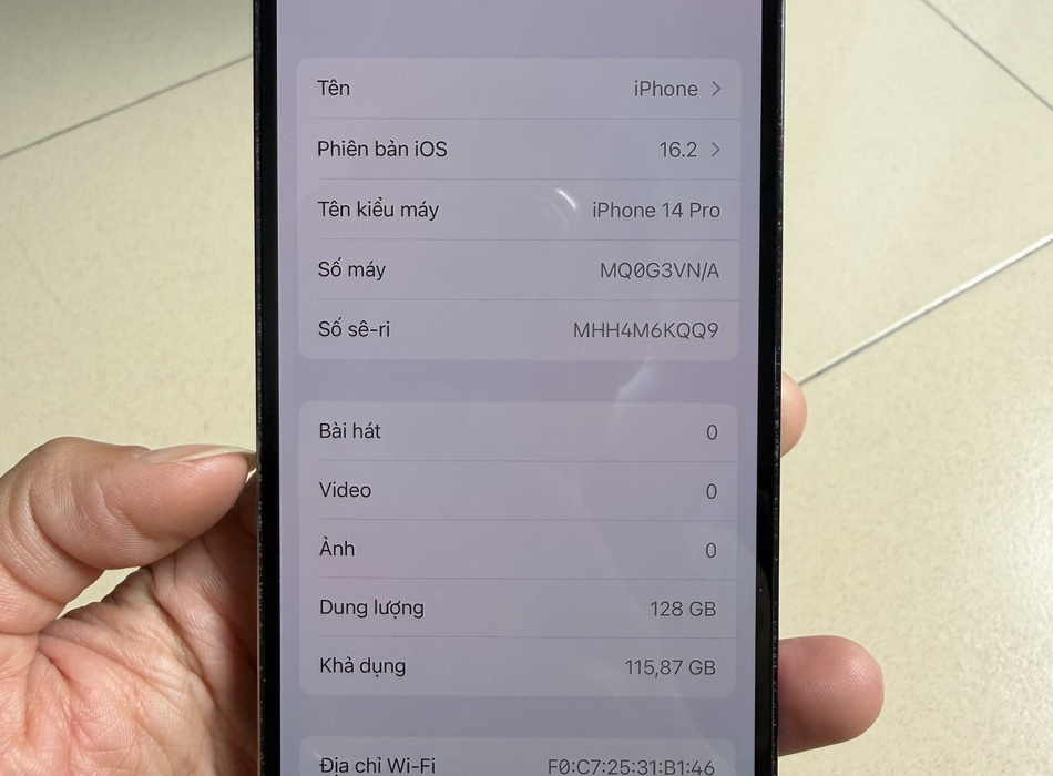 Pass máy iphone 14pro 128GB màu tím mộng mơ.