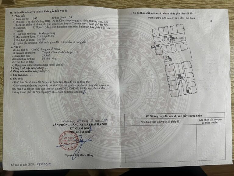 Siêu phẩm nhà chung cư 53,3m tại lộc ninh -tt chúc sơn-chương mỹ-hà nội Căn số 607A – Tháp A – Tòa HH1 – Thị trấn Chúc Sơn