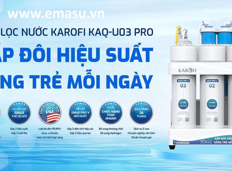 Mua máy lọc nước RO Karofi KAQ-U03 Pro chính hãng ở đâu? Nếu bạn đang tìm kiếm địa chỉ uy tín để mua máy lọc nước RO Karofi KAQ-U03 Pro chính hãng, giá tốt, dịch vụ hậu mãi tốt nhất hãy đến với Siêu thị điện máy quốc tế EMASU