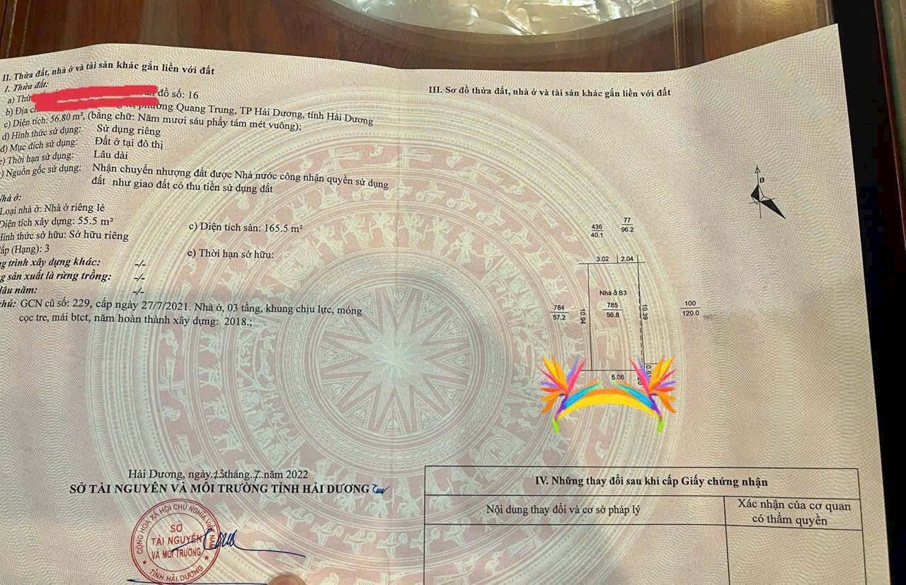 Chính chủ cần bán căn nhà 3 tầng ngõ phố Canh Nông 2, phường Quang Trung, thành phố Hải Dương.