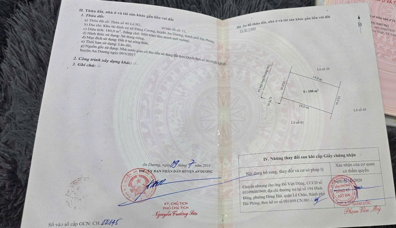 Bán đất 180m2 tđc đặng cương, an dương - giá: 4,x tỷ 34362377 | Rongbay.com
