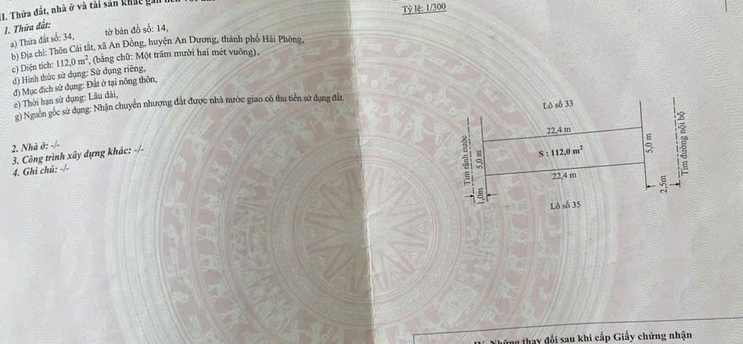 Bán đất Cái Tắt An Đồng, An Dương, Hải Phòng 112m , đường 5m, giá 40tr/m