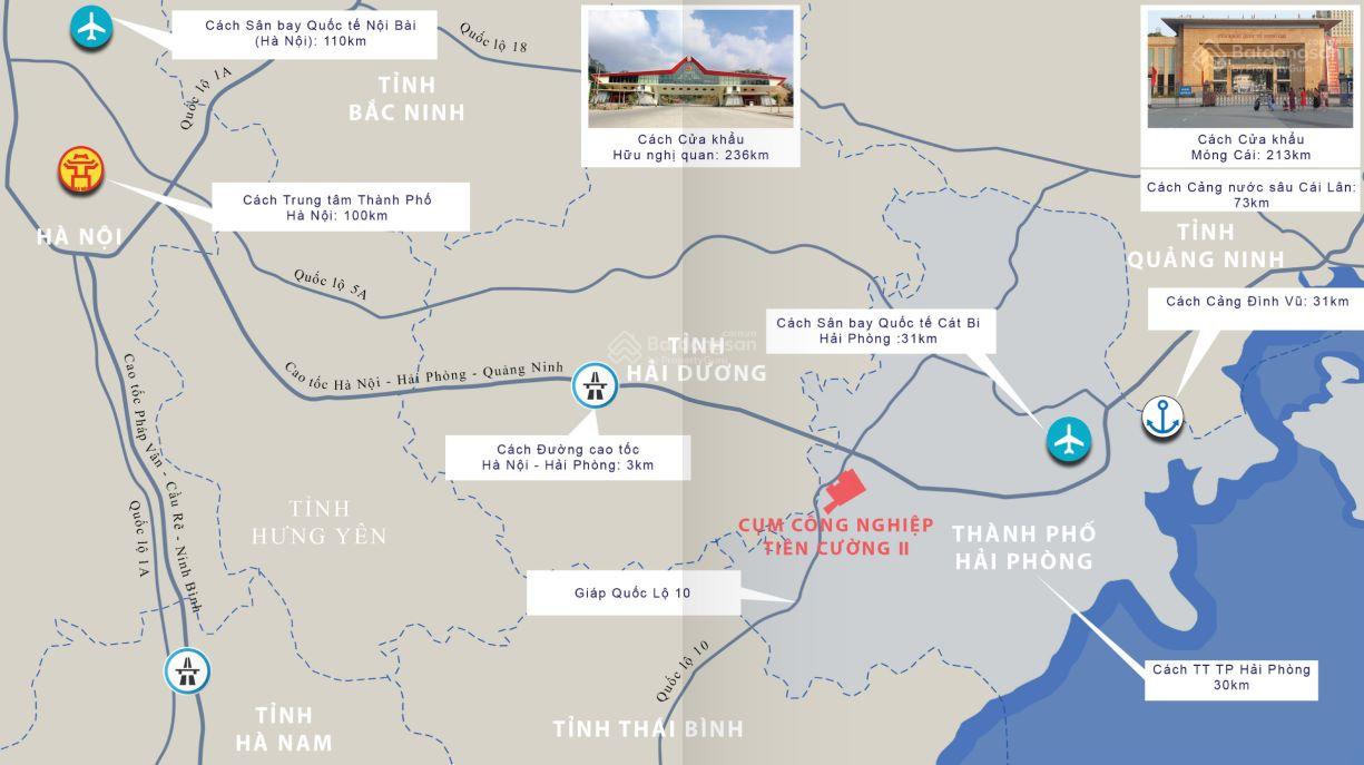 Cách cảng Đình Vũ 30 km, sân bay Cát Bi 20 km.