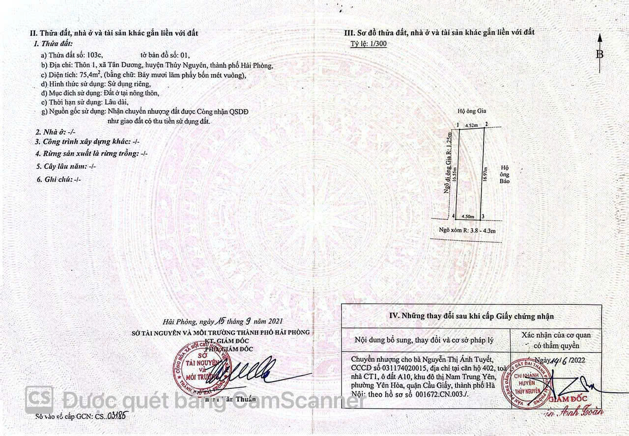 Chính chủ bán lô đất tại Tân Dương - Thuỷ Nguyên - Hải Phòng