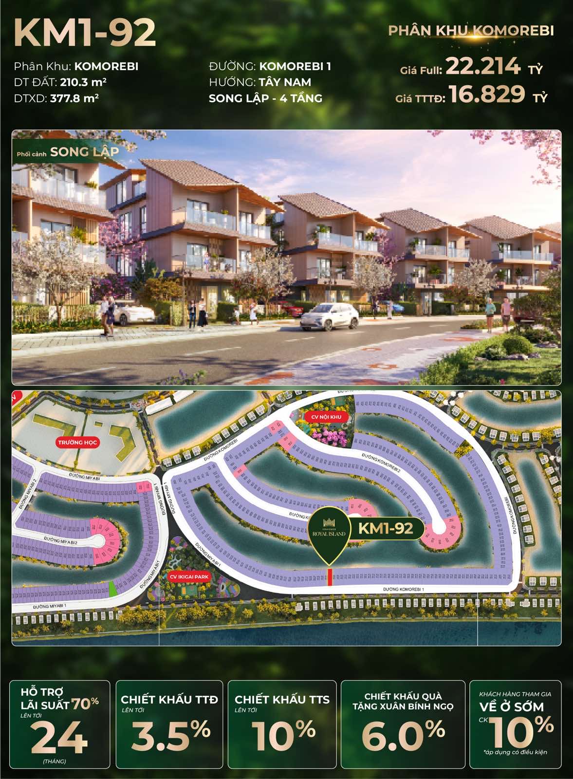 ⛩KM1-92 – VỊ TRÍ MẶT HỒ – ĐẮT GIÁ NHẤT KOMOREBI VINHOMES ROYALL ISLAND