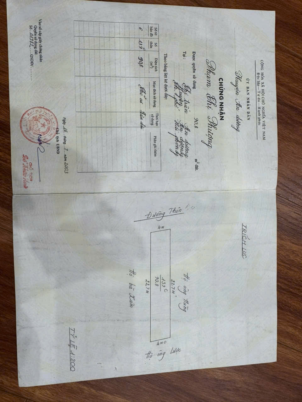 -        Diện tích: 90,8m² vuông vắn, bìa đỏ chính chủ.