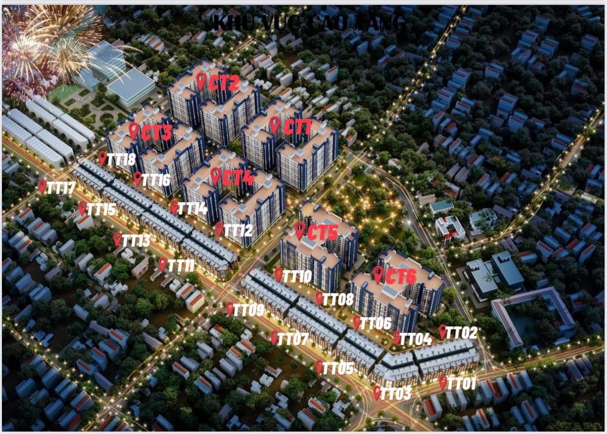 - Khu nhà ở xã hội có diện tích 53.913m², gồm 10 block nhà chung cư cao 15 tầng, mật độ xây dựng khoảng 48%.
