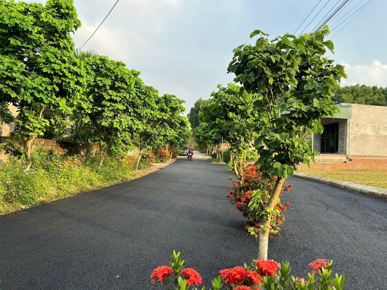 – Đường nhựa rộng, ô tô tránh nhau thoải mái