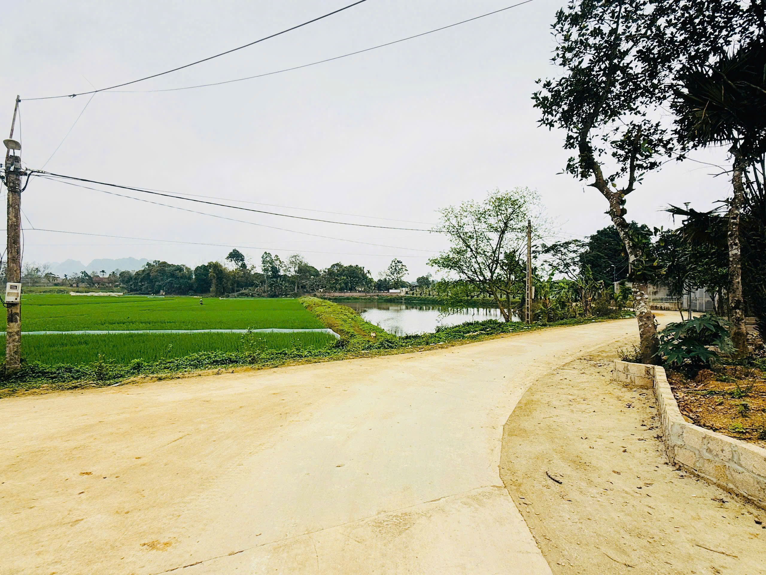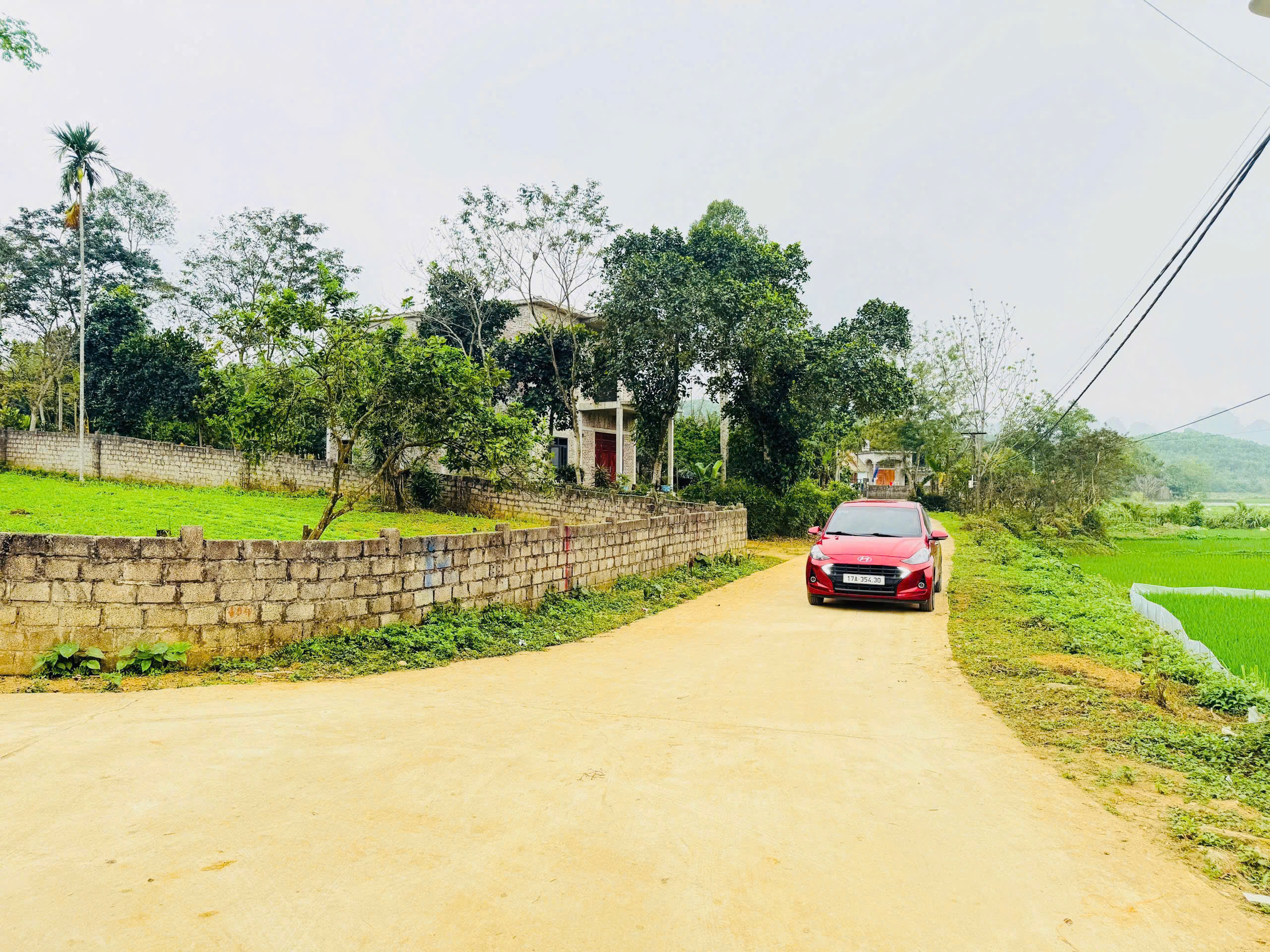 Đường: bám đường bê tông, rộng, 3 ô tô tránh nhau thoải mái