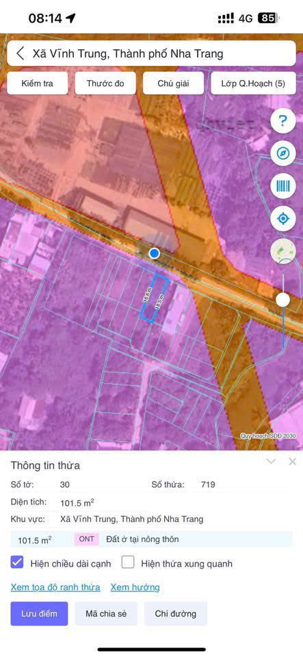 Bán lô đất vĩnh trung phường Tây Nha Trang  Khánh Hoà đường hiện trạng 8m oto cách đường D30 tầm 300m
