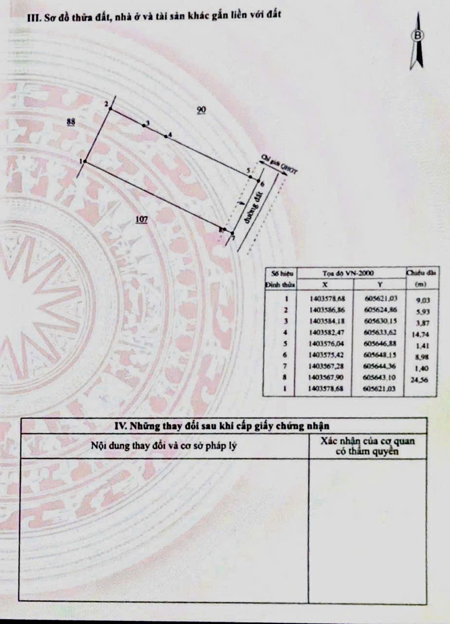 ** Diện tích: 232 m² (ngang 9m, thổ cư 35m2)