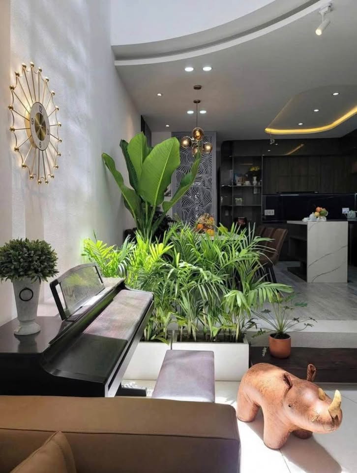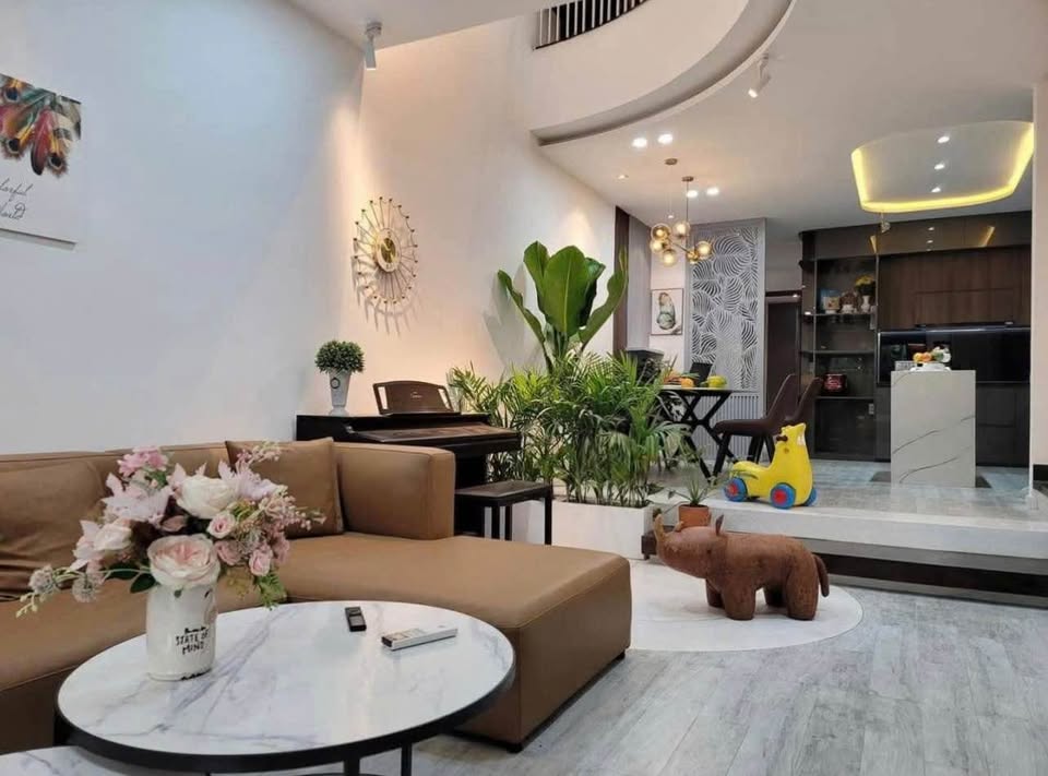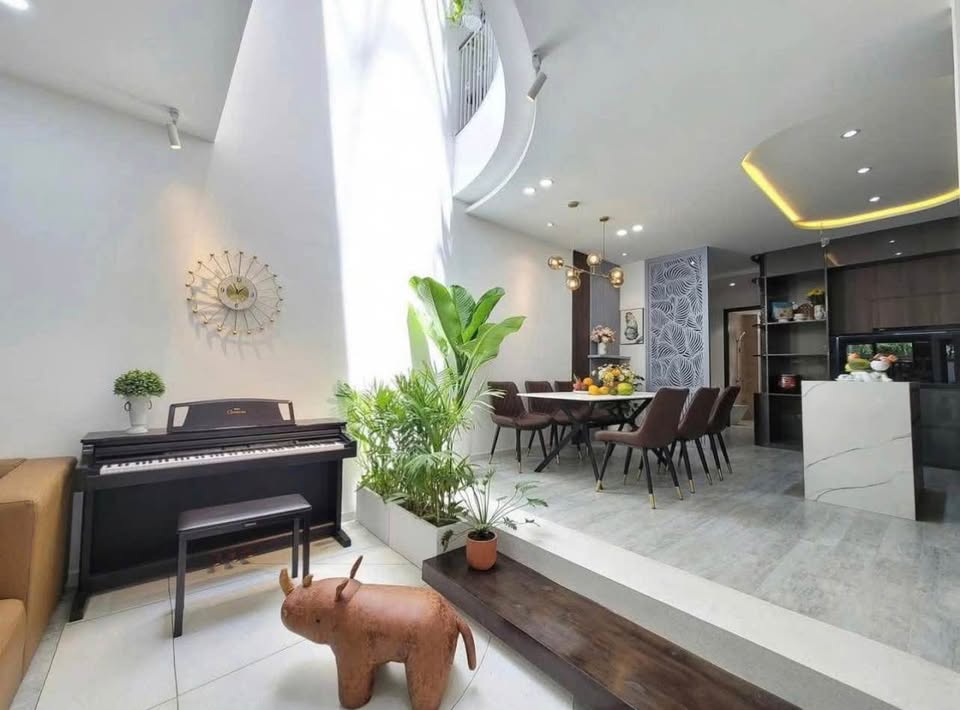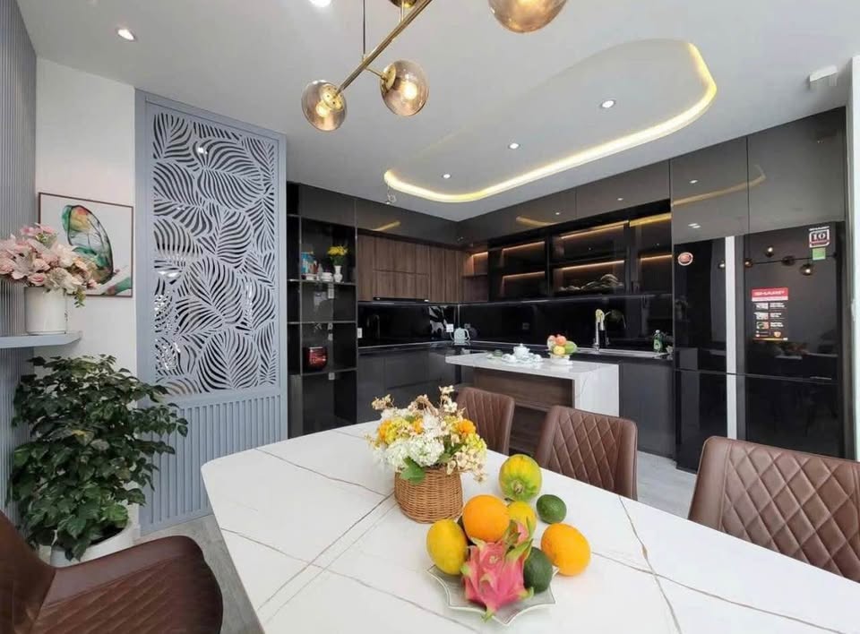 Phòng khách sang trọng, bếp hiện đại.